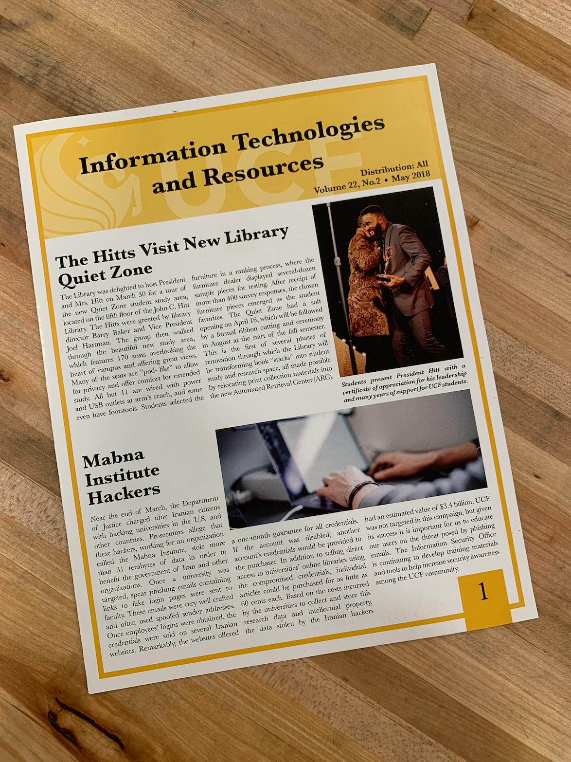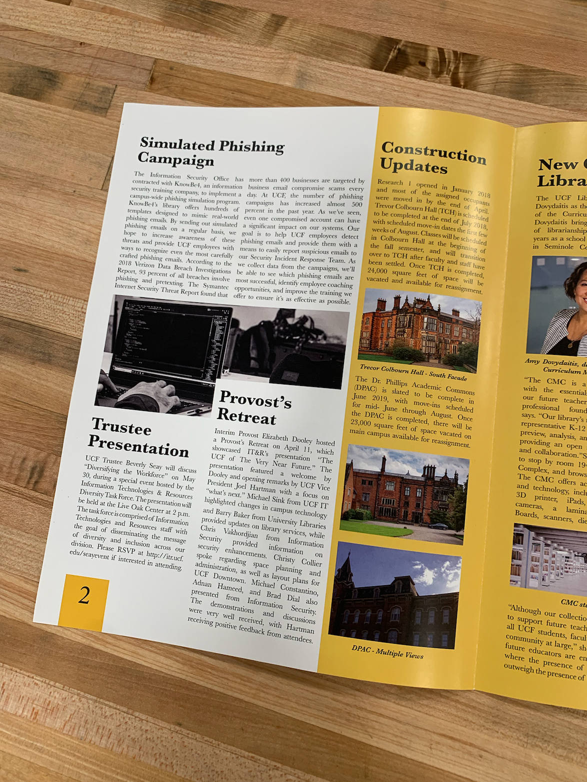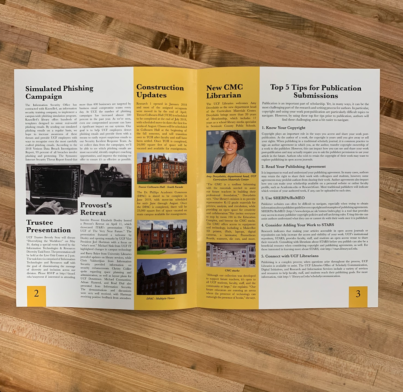 This brochure layout was a remake of a real UCF brochure that was written in 2018. All the information is the same but the design and images are different.